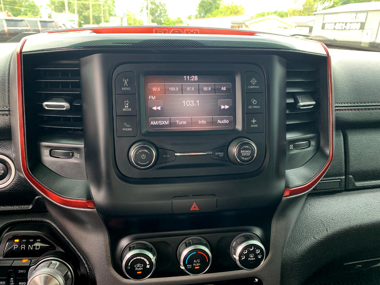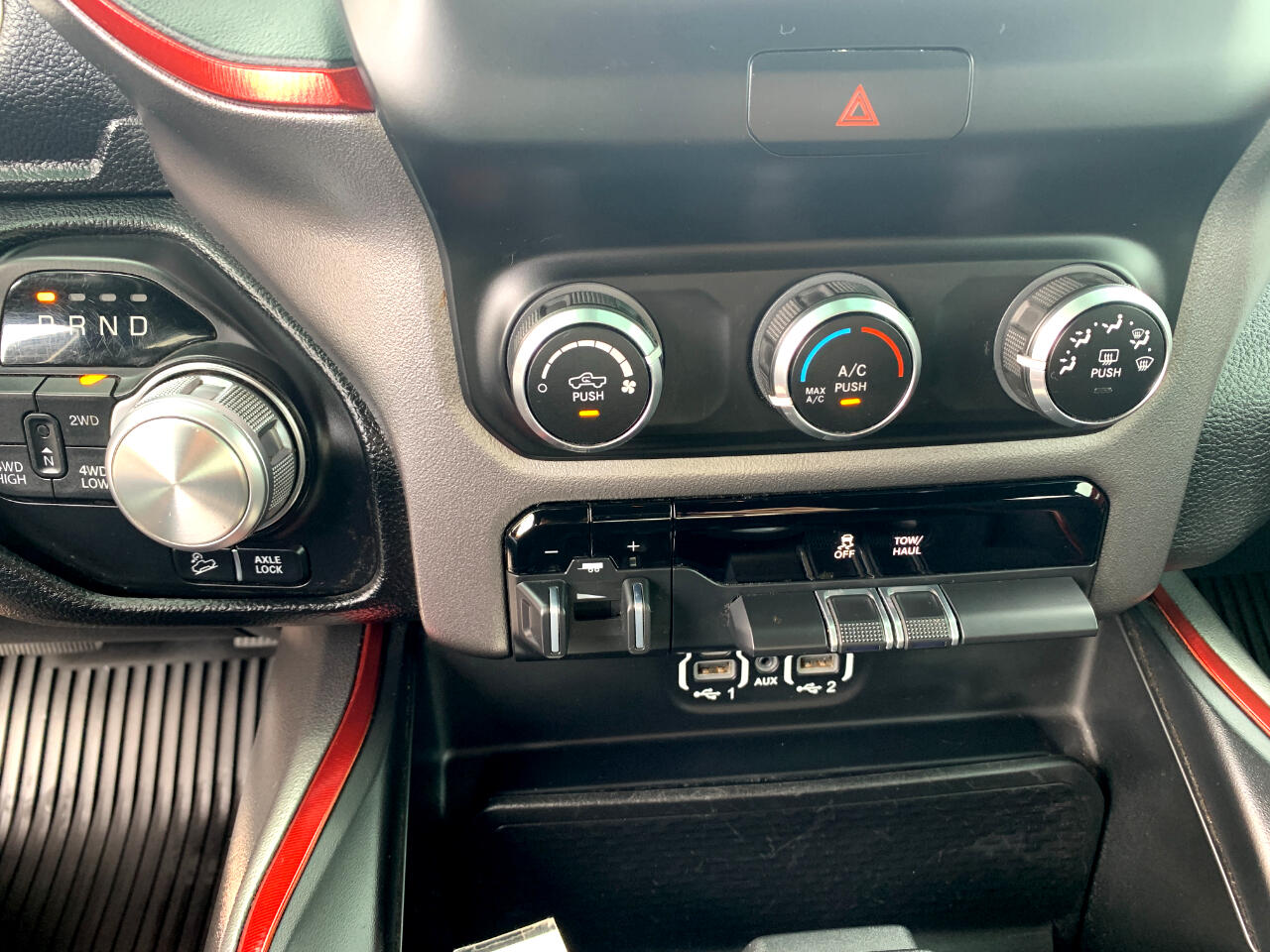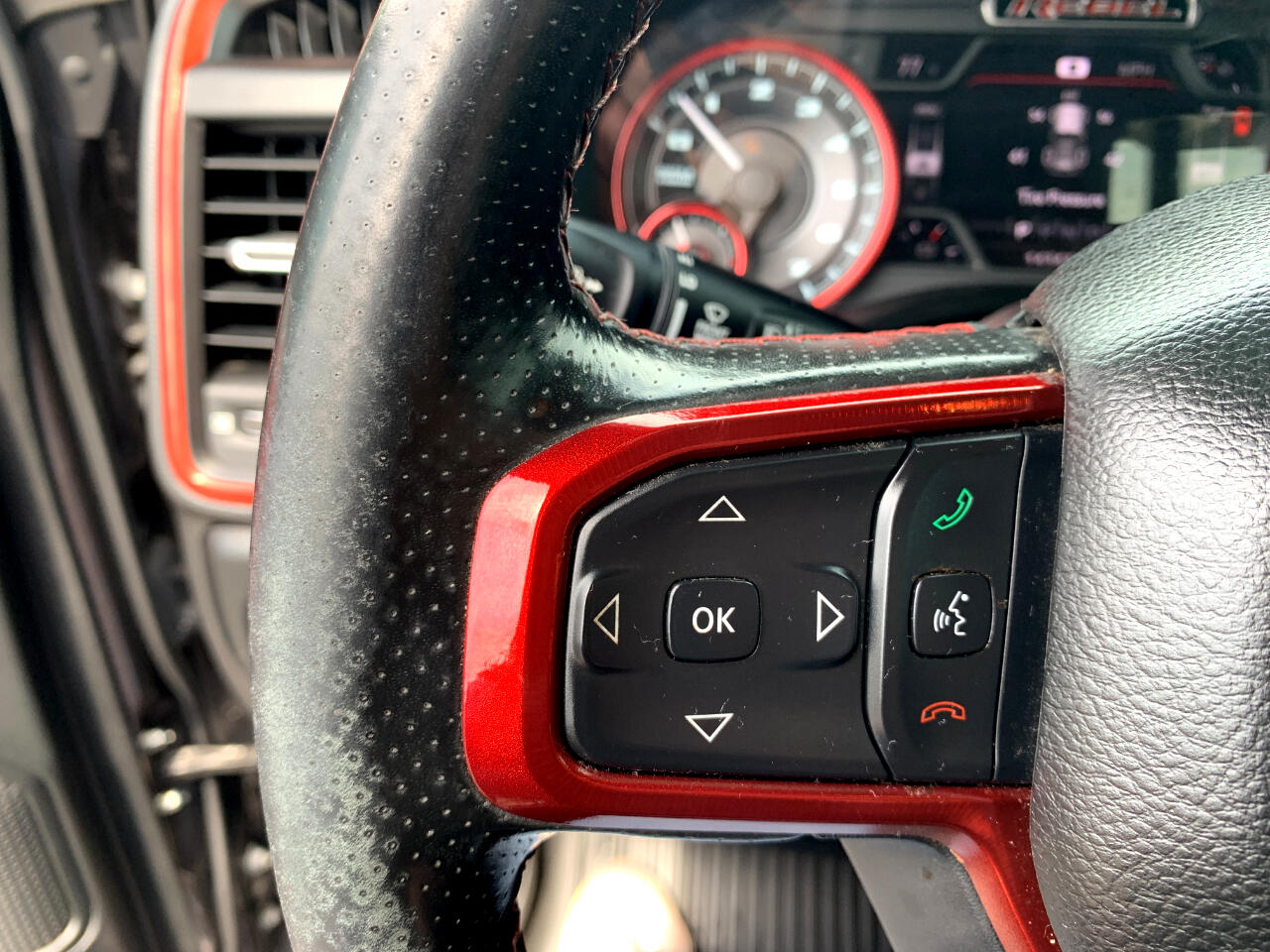2019 Ram 1500 Rebel Quad Cab, 5.7L V8, Automatic, 4WD, owners manual, second row folding seat, aux audio jack, USB port, steering wheel mounted controls, pick up truck cargo box light, running boards, telescopic steering column, tilt wheel, power steering, front side airbag, automatic headlights, child safety door locks, passenger airbag, driver airbag, driver multi-adjustable power seat, daytime running lights, fog lights, Bluetooth, back up camera, AM/FM, power windows, keyless entry, sliding rear pick up truck window, air conditioning, power mirrors, power locks, tow package, electronic stability control, traction control, hill start assist control, hill descent control