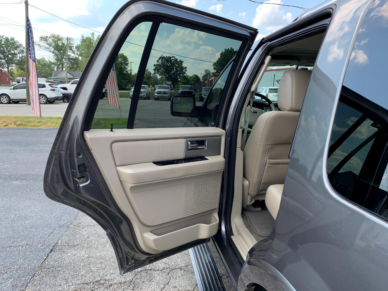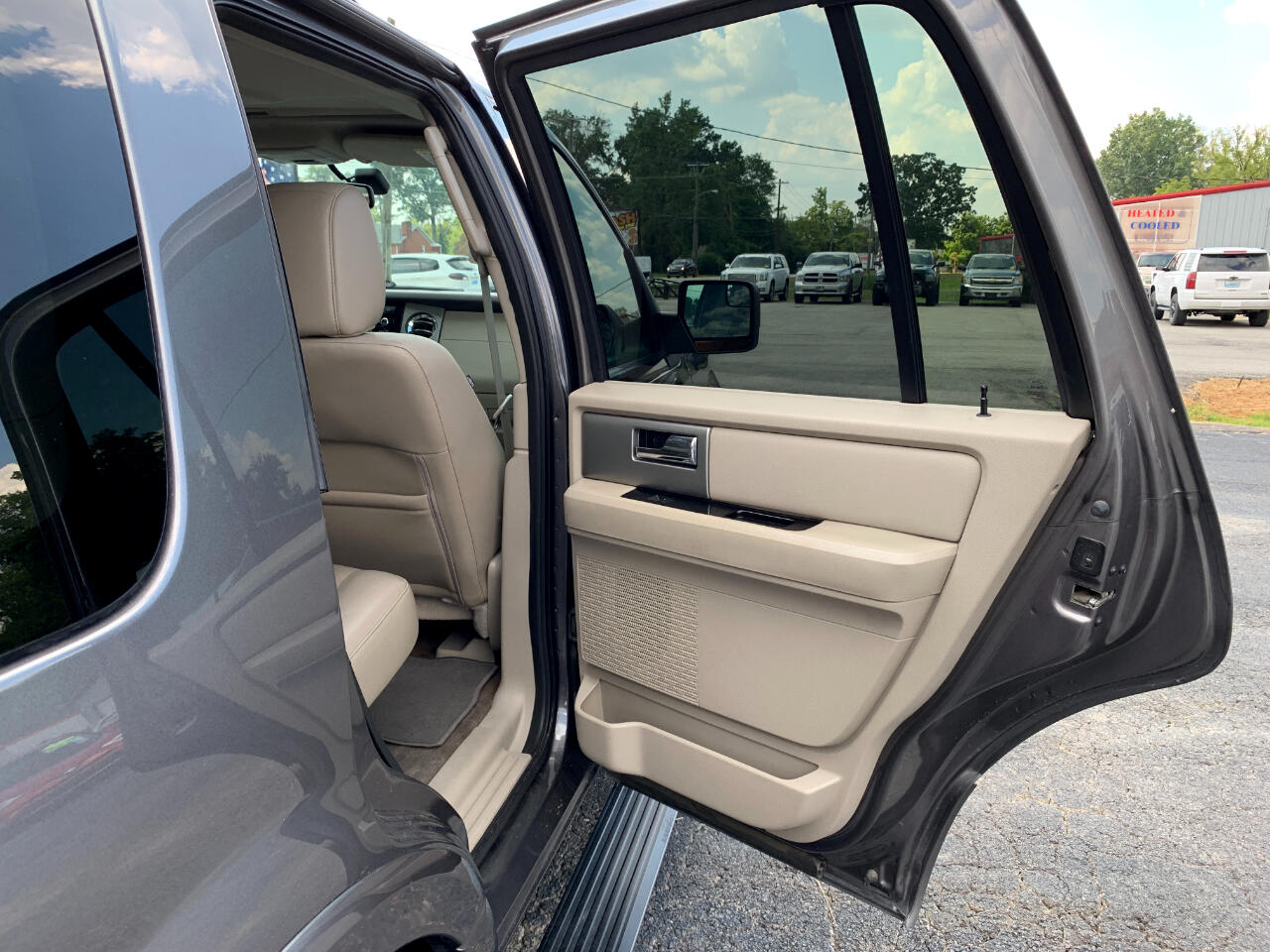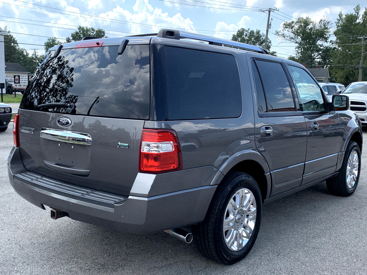 2014 Ford Expedition Limited, 5.4L V8, Automatic, RWD, child safety door locks, locking pick up truck tailgate, power door locks, vehicle anti-theft, ABS brakes, electronic brake assistance, traction control, vehicle stability control system, driver airbag, front side airbag, passenger airbag, side head curtain airbag, electronic parking aid, keyless entry, air conditioning, separate driver/front passenger climate controls, cruise control, tachometer, tilt steering, tilt steering column, leather steering wheel, steering wheel mounted controls, adjustable foot pedals, genuine wood trim, tire pressure monitor, trip computer, CD player, second row sound controls, driver multi-adjustable power seat, front heated seat, front power lumbar support, front power memory seat, leather seat, passenger multi-adjustable power seat, second row folding seat, third row removable seat, load bearing exterior rack, automatic headlights, fog lights, running boards, skid plate, alloy wheels, full size spare tire, power windows, electrochromic exterior rearview mirror, electrochromic interior rearview mirror, deep tinted glass, rear window defogger, rear wiper, tow hitch receiver