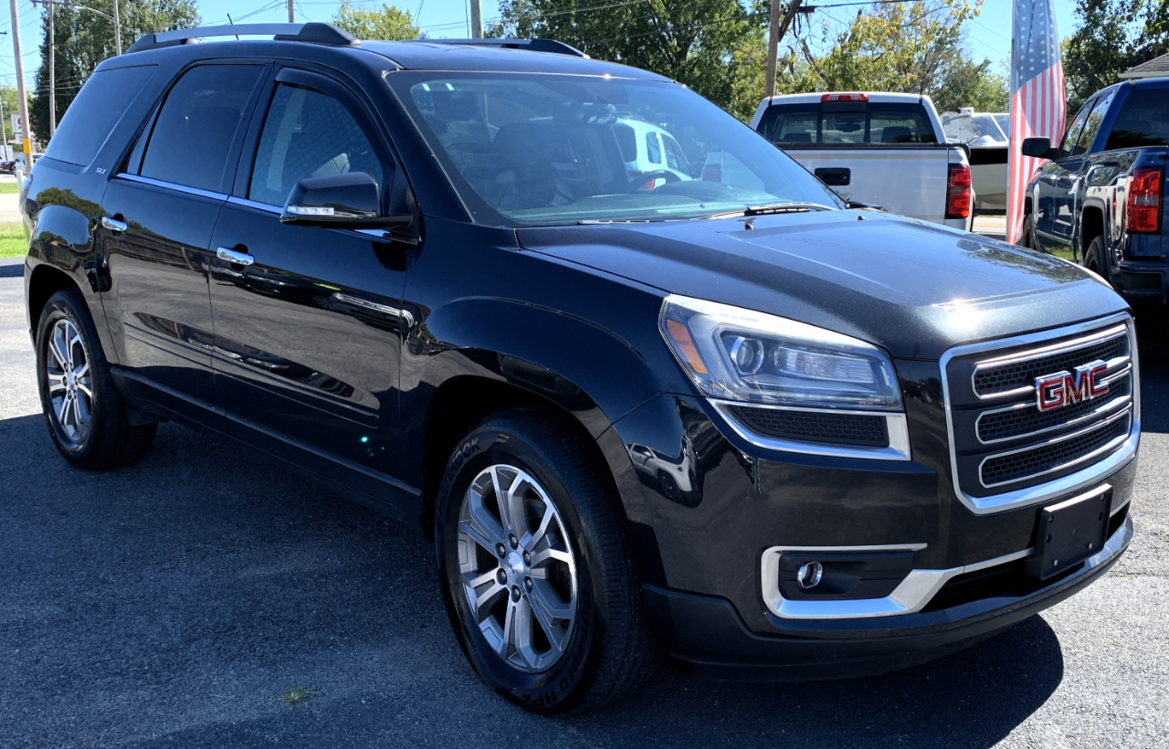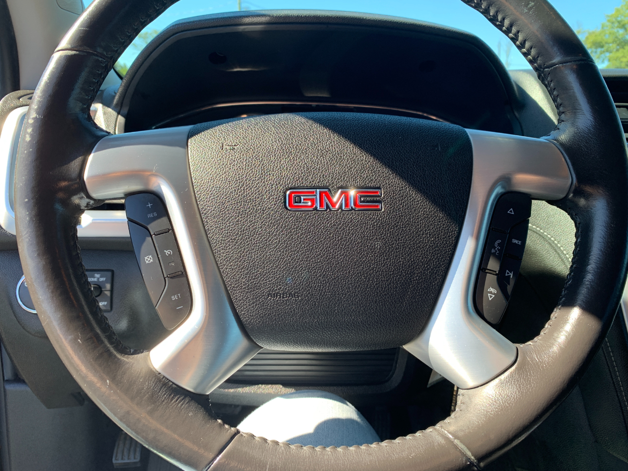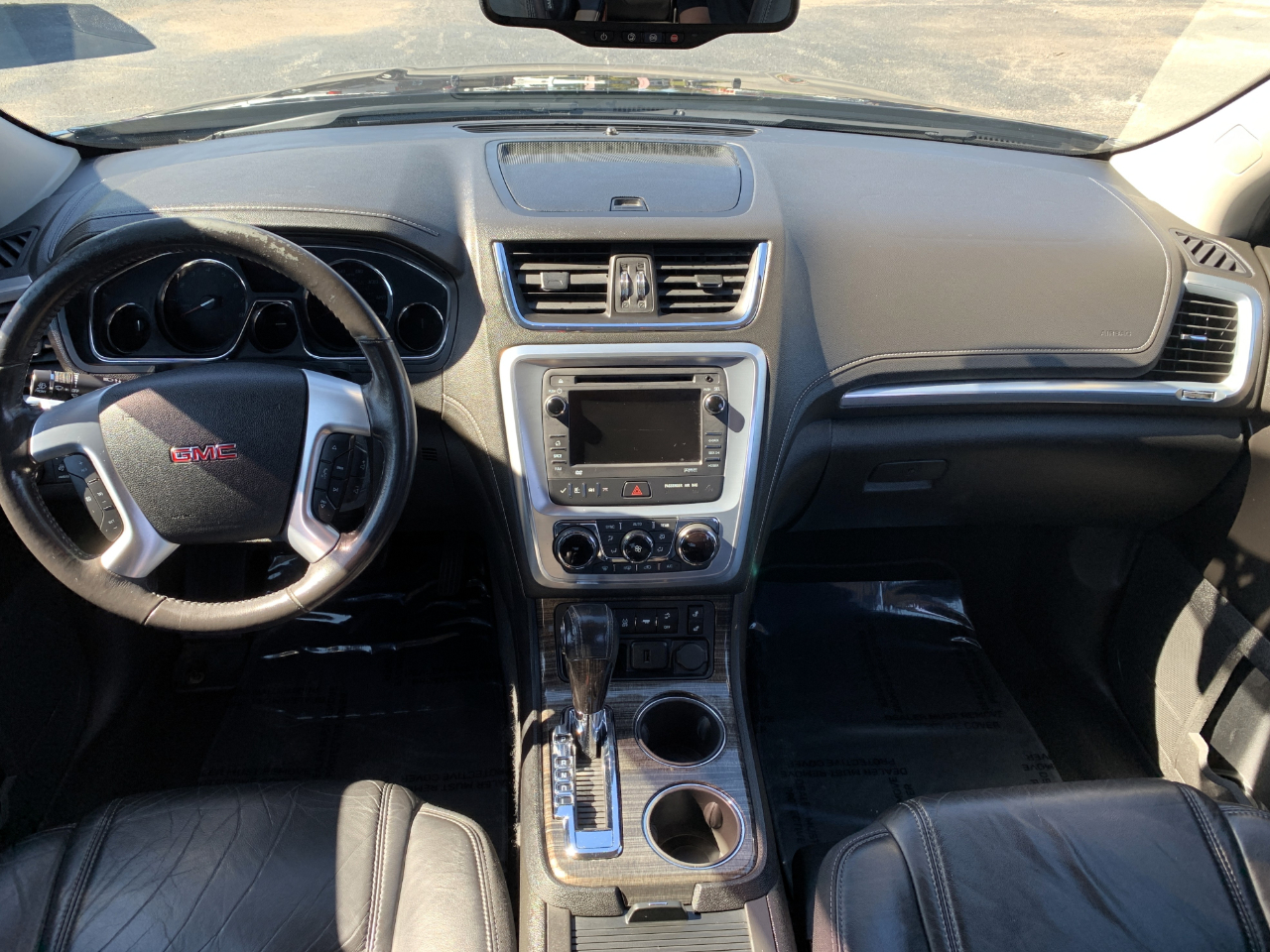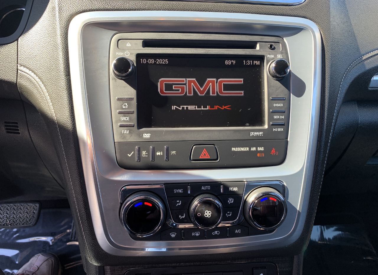 2015 GMC Acadia SLT, 3.6L V6, Automatic, AWD, child safety door locks, power door locks, vehicle anti-theft, 4WD/AWD, ABS Brakes, electronic brake assistance, traction control, vehicle stability control system, driver airbag, front side airbag, passenger airbag, side head curtain airbag, electronic parking aid, keyless entry, remote ignition, air conditioning, separate driver/front passenger climate controls, cruise control, tachometer, tilt steering, tilt steering column, steering wheel mounted controls, telescopic steering column, tire pressure monitor, trip computer, CD player, second row sound controls, telematics system, driver multi-adjustable power seat, front heat seated, front power lumbar support, leather seat, passenger multi-adjustable power seat, cargo area tiedowns, automatic headlights, daytime running lights, fog lights, rear spoiler, alloy wheels, power windows, electrochromic interior rearview, mirror, deep tinted glass, rear window defogger, rear wiper