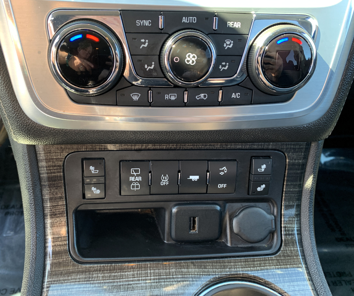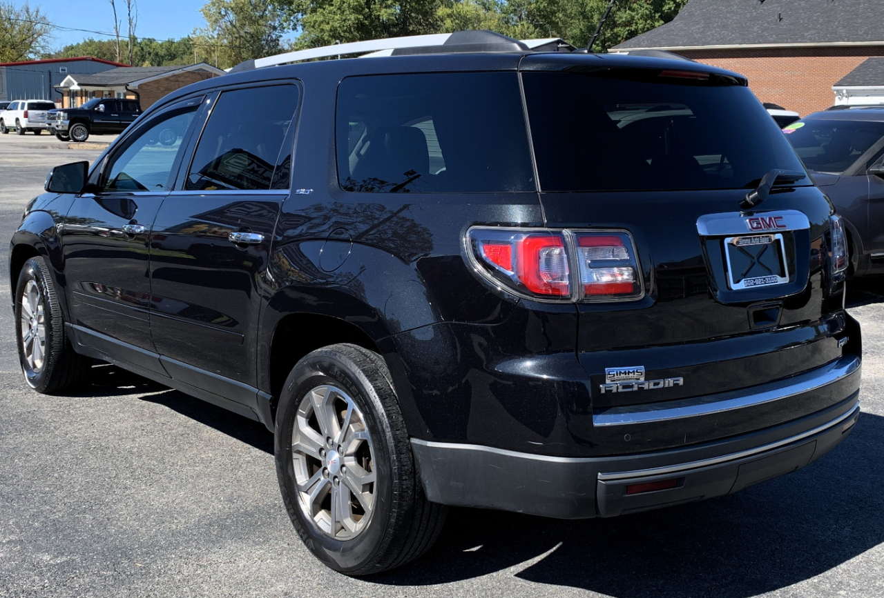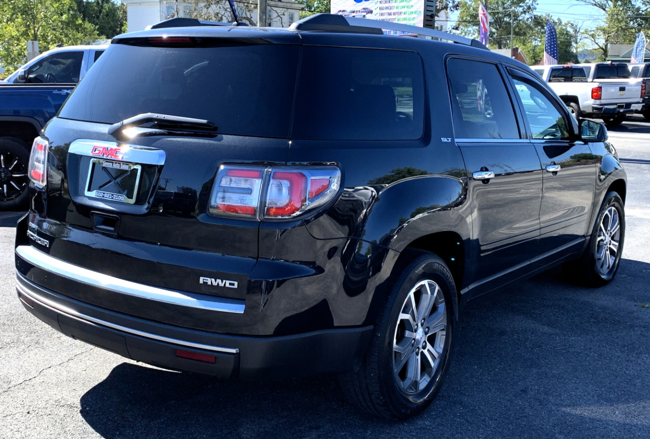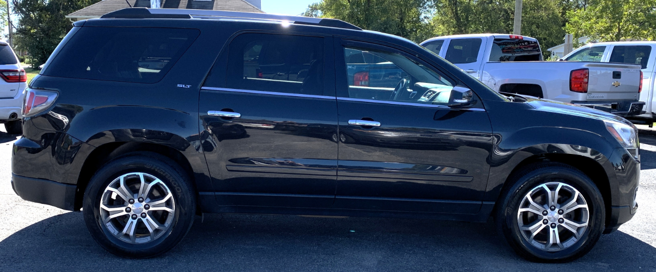 2015 GMC Acadia SLT, 3.6L V6, Automatic, AWD, child safety door locks, power door locks, vehicle anti-theft, 4WD/AWD, ABS Brakes, electronic brake assistance, traction control, vehicle stability control system, driver airbag, front side airbag, passenger airbag, side head curtain airbag, electronic parking aid, keyless entry, remote ignition, air conditioning, separate driver/front passenger climate controls, cruise control, tachometer, tilt steering, tilt steering column, steering wheel mounted controls, telescopic steering column, tire pressure monitor, trip computer, CD player, second row sound controls, telematics system, driver multi-adjustable power seat, front heat seated, front power lumbar support, leather seat, passenger multi-adjustable power seat, cargo area tiedowns, automatic headlights, daytime running lights, fog lights, rear spoiler, alloy wheels, power windows, electrochromic interior rearview, mirror, deep tinted glass, rear window defogger, rear wiper