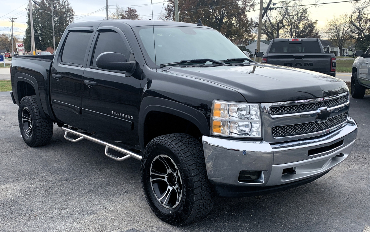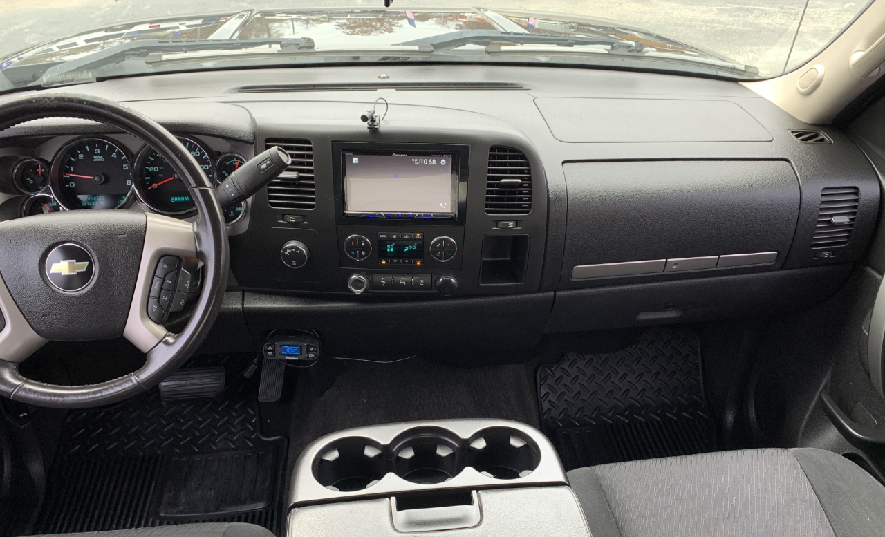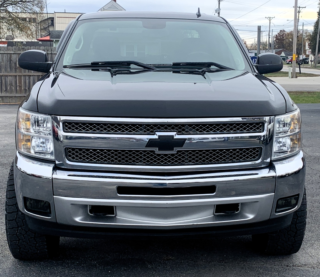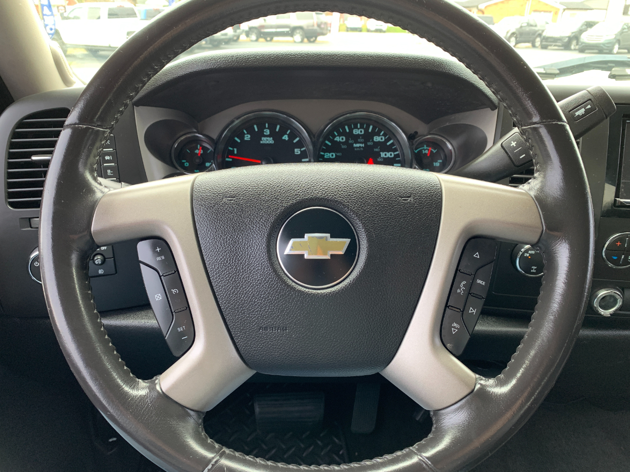 2012 Chevrolet Silverado LT, 5.3L V8, Automatic, 4WD, child safety door locks, power door locks, vehicle anti-theft, 4WD/AWD, ABS Brakes, traction control, vehicle stability control system, driver airbag, front side airbag, passenger airbag, side head curtain airbag, keyless entry, air conditioning, cruise control, tachometer, tilt steering, tilt steering column, leather steering wheel, steering wheel mounted controls, tire pressure monitor, trip computer, AM/FM radio, CD player, voice activated telephone, telematics system, front split bench seat, second row folding seat, automatic headlights, daytime running lights, pick up truck cargo box lights, front air dam, chrome wheels, full size spare tire, steel wheels, power windows, heated exterior mirror, power adjustable exterior mirror, deep tinted glass, interval wipers