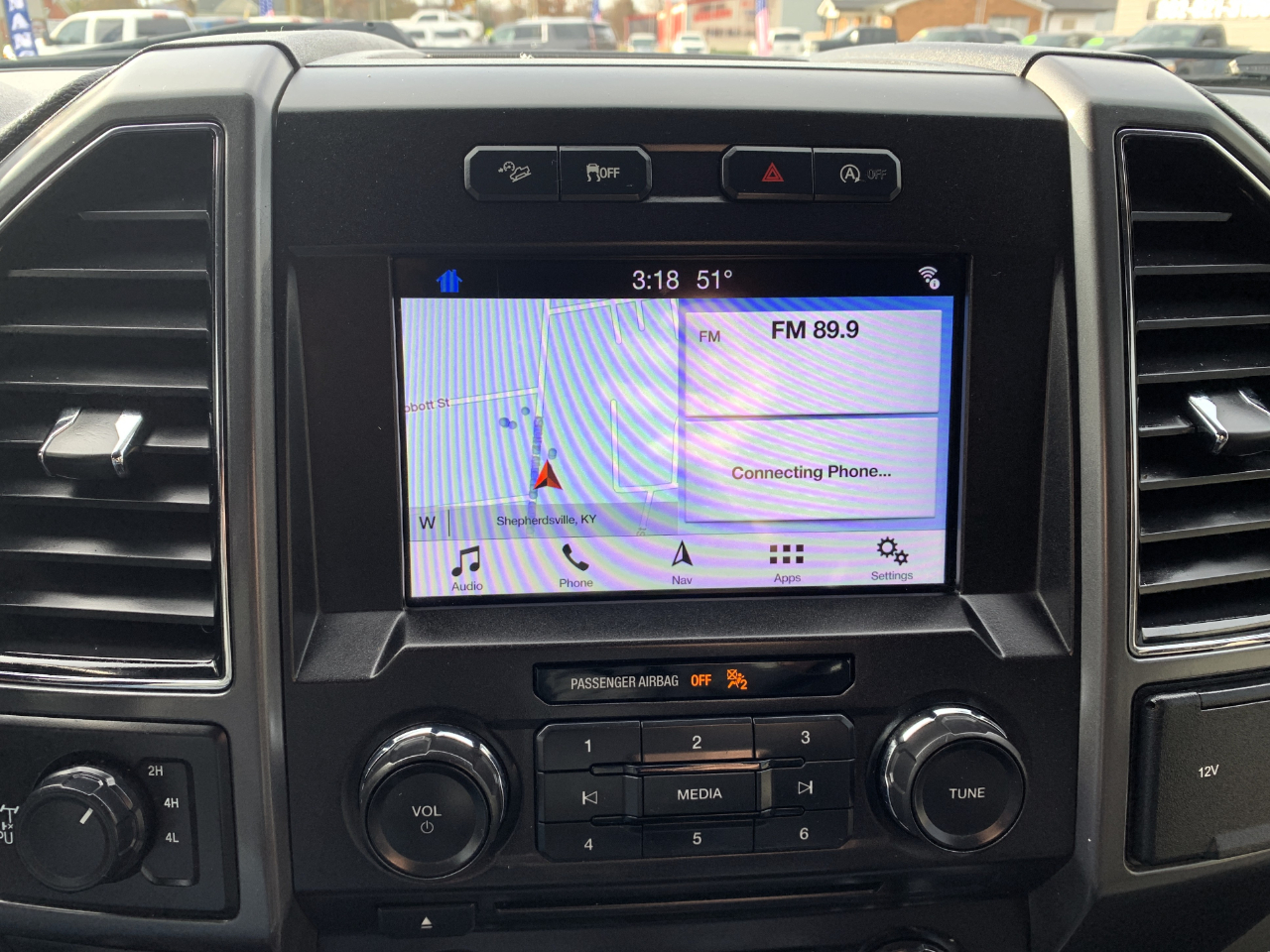 2018 Ford F-150 XLT Supercrew, 3.5L V6, Automatic, 4WD, AM/FM radio, 4WD/AWD, daytime running lights, automatic headlights, locking pick up truck tailgate, tinted windows, air conditioning, keyless entry, passenger multi-adjustable power seat, rear air, second row folding seat, CD player, rear defroster, heated seats, traction control, navigation, Bluetooth, steering wheel mounted controls, towing preparation package, adjustable foot pedals, WeatherTech floor mats, driver multi-adjustable power seat, tilt steering, power steering, power mirrors, power locks, pick up truck cargo box lights, sliding rear pickup truck window, back up camera, tow hitch receiver, electronic parking aid, in mirror signals, running boards, child safety door locks, vehicle anti-theft, ABS Brakes, driver airbag, passenger airbag, side head curtain airbag, cruise control, telescopic steering column, front split bench seat, fog lights, alloy wheels, power windows