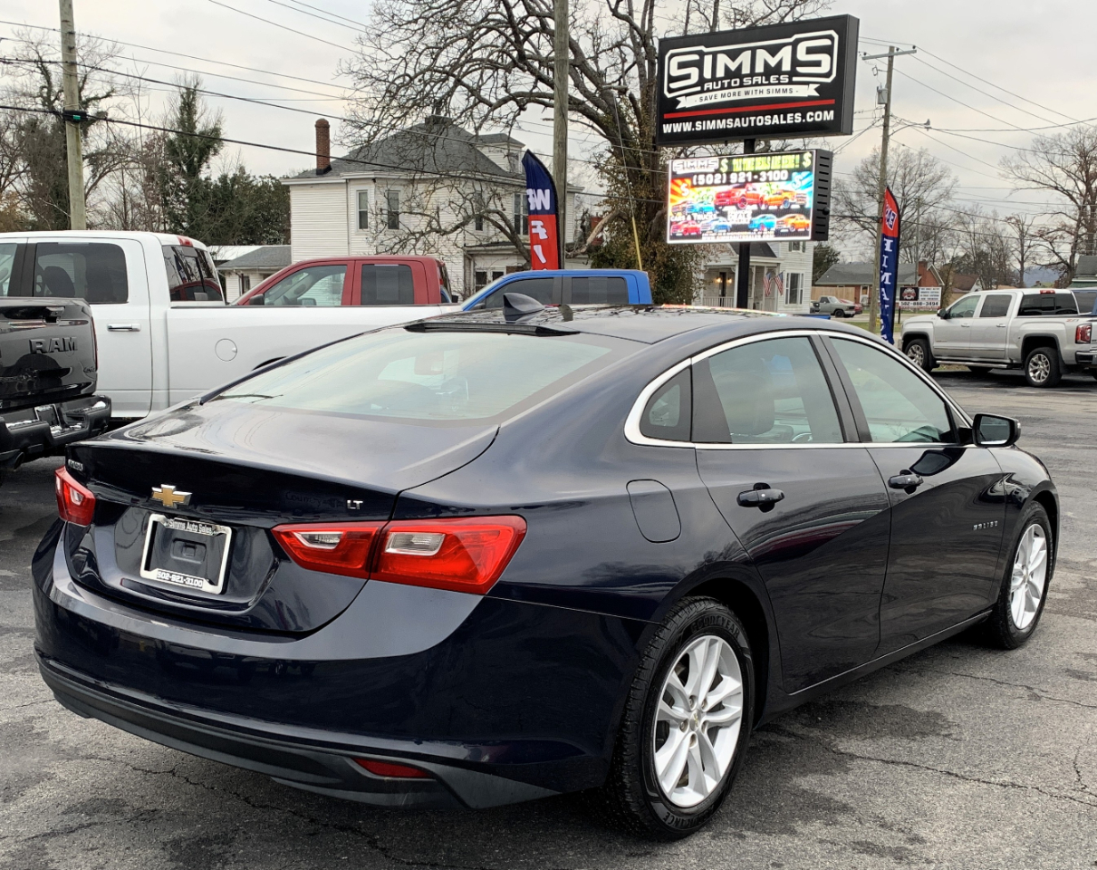 2016 Chevrolet Malibu, 1.5L L4, Automatic, FWD, child safety door locks, power door locks, vehicle anti-theft, ABS Brakes, traction control, vehicle stability control system, driver airbag, front side airbag, passenger airbag, side head curtain airbag, keyless entry, cruise control, tachometer, tilt steering, steering wheel mounted controls, telescopic steering column, adjustable foot pedals, tire pressure monitor, trip computer, AM/FM radio, voice activated telephone, navigation aid, telematics system, driver multi-adjustable power seat, front power lumbar support, daytime running lights, alloy wheels, power windows, interval wipers, rear window defogger