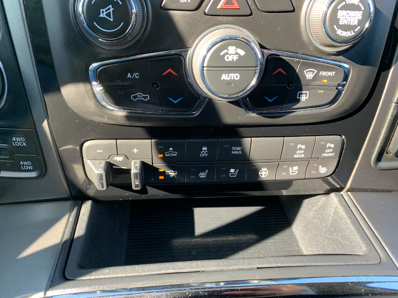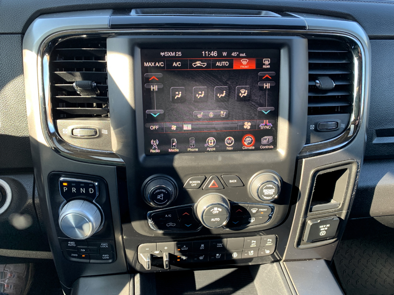 2017 Ram 1500 Sport Crew Cab, 5.7L V8, Automatic, 4WD, child safety door locks, power door locks, vehicle anti-theft, ABS brakes, traction control, vehicle stability control system, driver airbag, front side airbag, passenger airbag, side head curtain airbag, keyless entry, air conditioning, separate driver/front passenger climate control, cruise control, tachometer, tilt steering, leather steering wheel, steering wheel mounted controls, tire pressure monitor, trip computer, AM/FM radio, driver multi-adjustable power seat, front heated seat, front power lumbar support, fog lights, alloy wheels, power windows, electrochromic interior rearview mirror, interval wipers